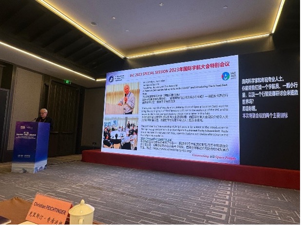 IAF Executive Director Christian Feichtinger delivered a presentation on “Planetary Defense: Turning Science into Global Security,” outlining global efforts to safeguard Earth from Near-Earth Objects (NEOs). He emphasized emerging trends such as lunar and Mars exploration, the integration of AI and big data, youth engagement, and orbital debris management. The presentation showcased the IAF’s commitment to fostering dialogue, capacity-building, and collaboration on planetary defense through its NEO Technical Committee to advance international response capabilities.